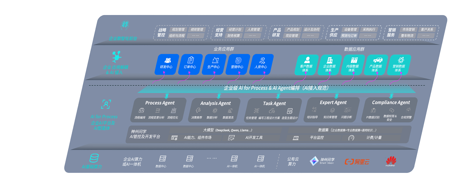 端到端的一站式AI工作空间深度融合了从企业战略规划到日常经营的全流程业务板块,,定向解决车企内部领域多、、部门多、、、、链条长、、场景碎片化等难题,,,支持车企快速构建以AI为核心的生产力写作体系,,,,实现任务执行与AI能力的无缝集成与交互