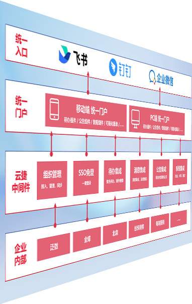 对协作平台提供支持服务,,,,支持企业应用与协作平台对接,,,包含组织同步、、消息集成、、待办集成等。。。支持目前主流的协作平台:钉钉、、、、企微和飞书。。。